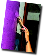 Per donar continuïtat a la decoració de l’escola nova, la paret es va pintar de color verd poma i les columnes de color lila. A infantil també van aprofitar per pintar alguns mobles antics de diferents colors.
