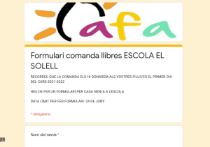 Per altra banda, ahir moltes de les famílies ja vau rebre la revista «Assolellat», i probablement hi vau detectar diverses errades. Efectivament, la impremta ha tingut un problema amb la impressió de la revista i això fa que la veieu amb pàgines desordenades, i segurament hi trobareu a faltar algunes pàgines com la fotografia de 4t, l’escrit de l’AFA o alguns escrits de comiat de 6è.