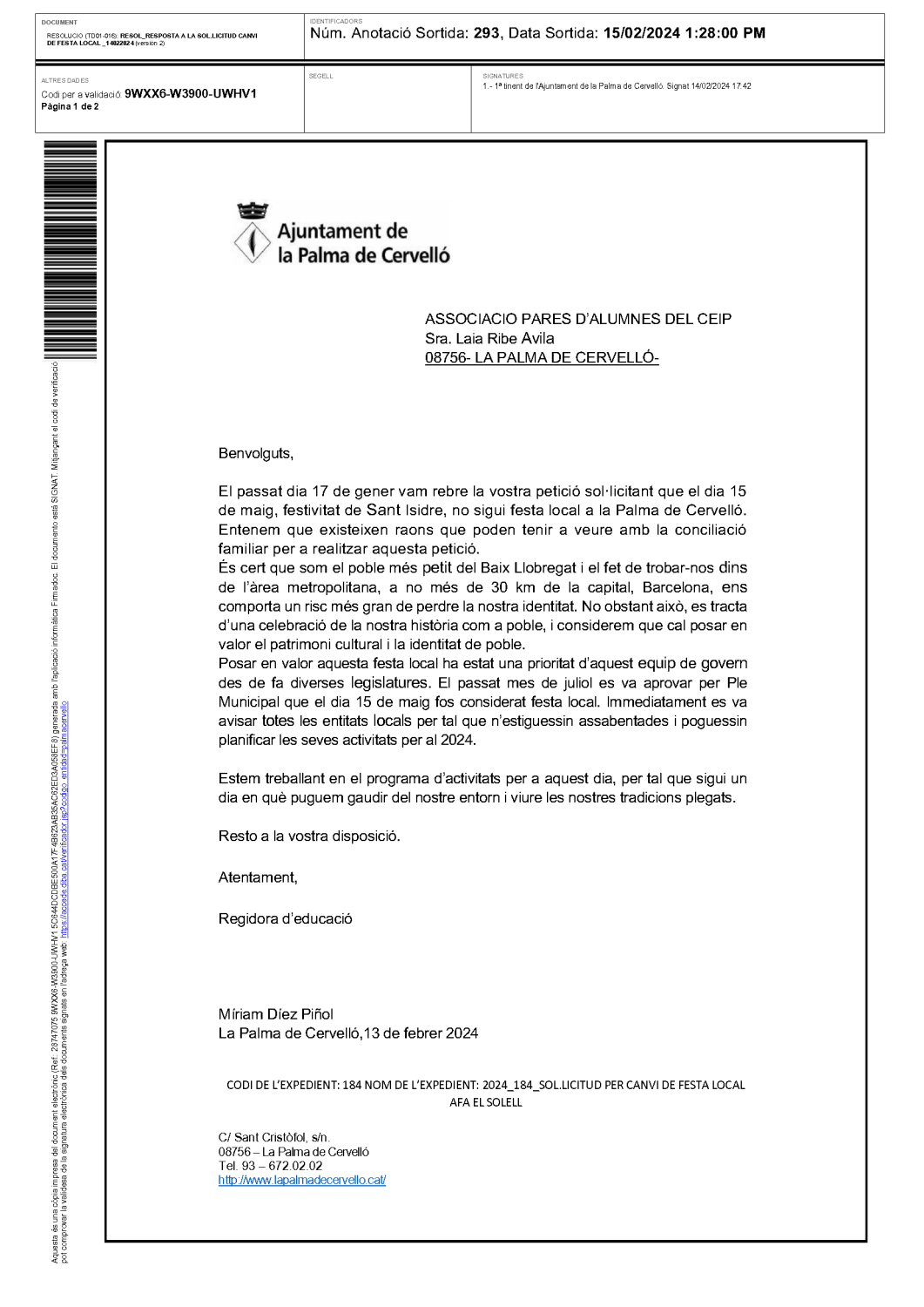 Com es va explicar a l’entrada del blog “Petició formal a l’Ajuntament per a canviar la festivitat del 15 de maig” des de l’AFA vam presentar una instància a l’Ajuntament pel canvi de data de la festivitat del 15 de maig amb les signatures de les famílies afectades.