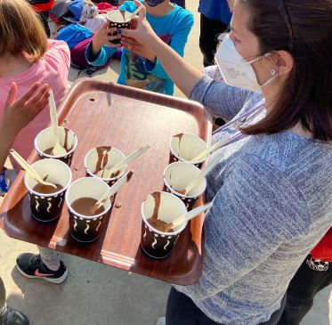 Agraïm també a l’empresa Menjares, cuineres, monitors/es del servei de menjador, cooperativa Consum i l’Obrador Roig per haver fet possible que ahir els nens gaudissin de coca i xocolata, i a la direcció i mestres de l’escola per l’organització,