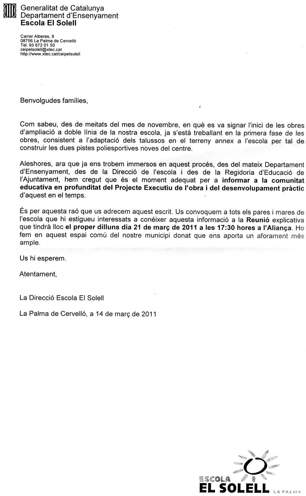 Les obres d’ampliació de l’escola El Solell van començar el passat dilluns dia 15 de novembre i duraran aproximadament 14 mesos. L’empresa adjudicatària és Constructora Calero.