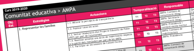 Aquests objectius surten del treball previ realitzat per tots els membres de l’AMPA per confeccionar la graella d’objectius que s’inclou en la Programació general anual i que va presentar-se el 24 d’octubre en el Consell Escolar.
