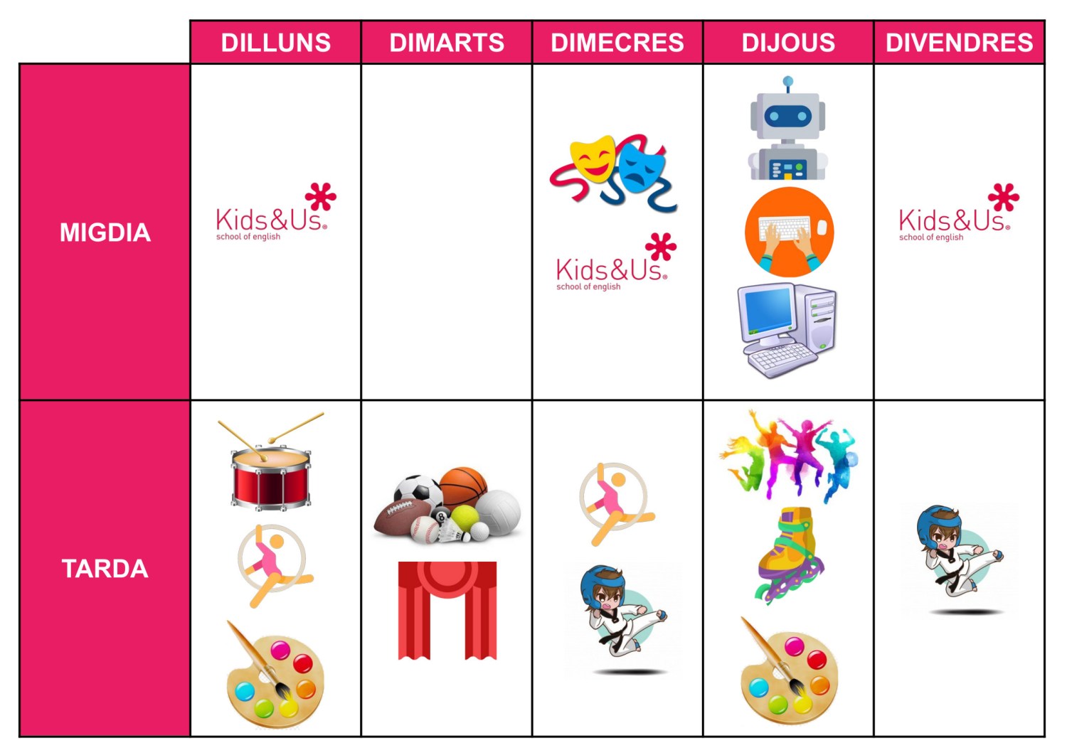 Grella d’activitats extraescolars que s’ofereixen el curs 2020-2021