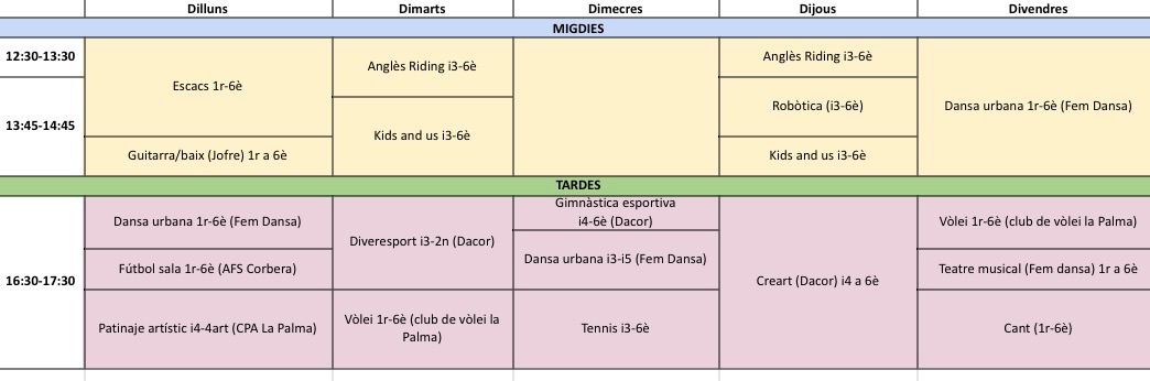 IMPORTANT: Podeu comunicar una nova alta o la baixa d’una activitat extraescolar fins al dia 20.