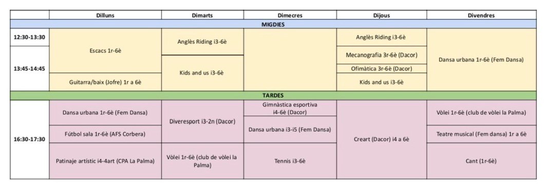 IMPORTANT: Podeu comunicar una nova alta o la baixa d’una activitat extraescolar fins al dia 20.