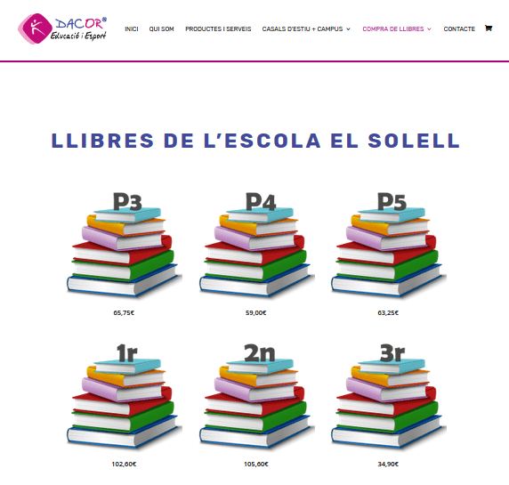 Solell i com fer la sol·licitud i el pagament dels llibres a través de Dacor. Com sabeu, per realitzar la compra dels llibres per aquesta via és requisit imprescindible ser soci de l’AMPA. Per tant, encara que el lloc web de Dacor us permeti fer la comanda dels llibres, aquesta no es farà efectiva fins que no s’hagi realitzat el pagament de la quota de l’AMPA. Evidentment, si alguna família no vol fer ús del servei pot comprar els llibres per altres vies.